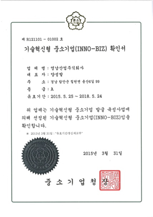 기술혁신형 중소기업(INNO-BIZ) 확인서